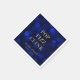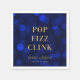 Elegant servett med orden "Pop Fizz Clink" i falskt guldfolie mot en bakgrund med saphirblå bokeh-ljus. Perfekt för förlovningsfester, bröllop, årsdagar, födelsedagar eller andra evenemang.