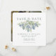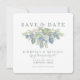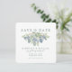 Ett perfekt "spara datum"-foto till anknytningskort för det trendiga temat saftiga blomsterbuketter som är så populärt idag! En vacker bukett av suckulenter i vackra nyanser av dammig grön, blå, grå och lavendel är inspirerad av de fantastiska färgerna hos dessa fantastiska små växter. Mjuk grågrön text ser fantastisk ut mot den krispiga vita bakgrunden. På baksidan är ett foto av bruden och brudgummen inramat i vitt. Se alla våra andra koordinerade produkter i "Saftig bukett"-serien för att skapa en vacker och matchande bröllsuppsättning.