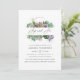 Trendiga suckulent baby drick och se-inbjudan med guldgeometrisk ram och sagegrön akvarell bakgrund.