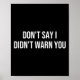 Säg inte att jag inte varnade dig poster