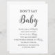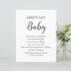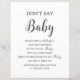 Lägg till en liten nykterhet i babyduschen med det här "Säg inte Baby-spelmärket". Designat med en ren svartvit estetisk och elegant-typografi är detta budgetvänliga pappra lakan perfekt för alla neutralter eller minimalistiska babyduschteman. Visning det nära ditt inträde eller spel bord för att vägleda gästerna genom utmaningen med roligten: säg inte "baby" eller förlora ditt tygespin! Perfekt för gender-neutralt-duschar, budgetmedvetna värdar eller party-planerare i sista minuten. Den här utskrivbara babyduschspelstecknet är både snyggt och funktionellt - inga fusk, bara roligt. Upptäck fler roligtar, babyduschspel och aktiviteter i butiken! c) Somerset Bra Paperie