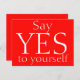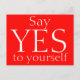 Detta är ett kraftfullt motiverande citat av rött färg-vykort som lyder: "Säg JA till dig själv" tryckt i stort vitt brev. Säg JA till dig själv! Du förtjänar det!