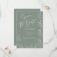 Vi presenterar vårt minimalistkort och trendig bröllop spara datum-kort, som innehåller en saga av stor betydelse i grönt färg och som är försedd med en enkel utformning av blommigten i elegant. Den känsliga vita kalligrafin tillför en något sofistikerad ton till detta hav av Gröntar Spara datumkortet, skapar det vara ett idealiskt val för ett modernt bröllop firande. Den romantiska och minimalistiska designen visar vackra typografi och elegant mot bakgrund av havets grönt och skapar en ren och snyggt och leta efter din speciella dag. Välj papper typ som du vill.