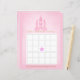 Rosa sagobaby shower bingo för ett shower-spel för en pojke eller flicka i blått och guld, med ett magiskt rosa slott.
