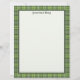 Shades of sage and olive green in an intricate plaid pattern makes this beautiful stationery paper stylish.
