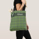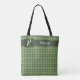 Shades of sage and olive green in an intricate plaid pattern makes this beautiful tote bag stylish. Personalize with your name and monograme in a dark green band and half oval near the top. Professional enough for the office, cute for school, terrific for shopping or at the beach.