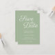 Typografiktexten Spara datum är ett vackert elegant-kalligrafi stil i vitt mot helfärgad contemporary. Lägg till ett eget foto på baksidan om du vill. Anpassa gröntens bakgrund till färg för att matcha bröllop färg-paletten. Den här kalligrafinbjudan till elegant bröllop spara datum finns på en rad dekorativa bakgrunder.