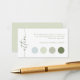 Förhöj din bröllopsbrevpapper med detta eleganta Attire Details-kort, som är utformat för att varsamt guida gästerna mot din föredragna färgpalett för evenemanget. Med en ren, modern layout och mjuka, naturinspirerade färgprover, lägger detta kort till en sammanhängande touch till din fest medan ditt budskap förblir tydligt och stilfullt. Perfekt att inkludera i inbjudanpaket eller välkomstpaket.