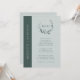 Modern djärv typografi Emerald and Sage Grönt Monogram Wandement QR Code Bröllbjudan... Vår "Allt-i-ett" QR Code OSA Sage och emerald grönt bröllopsinbjudan har fet serif-typografi kombinerat med sans serif-text för en enkel och trendig bröllopsinbjudan med monogrammet. De framväxande gröntens monogram-utandnings- och läafyillustrationer är handritade konstgjorda botaniska ämnen... ge en unik och snyggt leta efter moderna bruder. Baksidan av inbjudan innehåller både en QR-kod som kan skannas av mottagaren och den utskrivna URL:en för webbplatsen bröllop, som gör det möjligt för dina inbjudna att snabbt och enkelt OSA så att du lättare kan planera informationen om din mottagning. Denna moderna, minimala inbjudan till stil fram och bak-bröllop var designad för att vara trendig, tidsbesparande och träd-bevarande. All exempeltext kan enkelt revideras med egen information om anpassningsmallen.