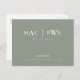 Sage Enkel och Ren Monogram Spara Datum Vykort