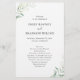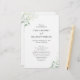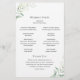 Elegant botaniskt Bröllopsprogram med en enkel layout med en stig av eukalyptus greenery i en fin skugga av sage-grönt i det övre lämnat hörnet och i det nedre hörnet av högerna. En enkel och modern perfekt för val av vår eller sommar-bröllop.