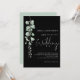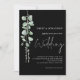 Sage Eucalyptus Elegant Script Black Bröllop. Modern botanisk stil, med ett handskrivet skript för Bröllop och resten av texten kan du enkelt anpassa det som är vitt på svart bakgrund. En elegant gren av vattenfärgen eucalyptus lämnar springa nedåt på den lämnat sidan. Du kan ändra färg i texten och bakgrunden på båda sidor om du vill ändra ytterligare alternativ för redigering.