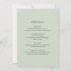 Elegant botaniskt allt under en bröllopsinbjudan med en enkel layout med en sprig av eukalyptus greenery i en underbar skugga av sage grönt i det övre lämnat hörnet och nedre högernas hörn. Baksidan har en mall som fungerar som tilläggskort, där du kan lägga till gästinformation. En enkel och modern perfekt för val av vår eller sommar-bröllop.