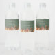 Dessa elegant vattenflaskor med briden och trimmarens namn och bröllop-datum har handmålad vattenfärg som brinner orange och terracotta löv, kräm och beige dahlias, och vacker rost-färgad ro som arrangeras som snyggt gräns på en gröntens bakgrund. Sök efter matchande objekt i samlingen Sage Autumn Romantik.