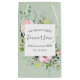 Dessa eleganta gårtaskar för repetitionens middag har rosa blommor med gröna blad och akvamarinfärgade pilgrenar under en vit fyrkant. "Vår evighet börjar i morgon" tillsammans med parets namn och bröllopsdatum finns i mitten. Designen kompletterar mina bröllops- och shower-inbjudningar "Blush Pink Rose Floral Bouquet". De blommiga och gröna detaljerna passar perfekt till en utomhus-, rustic- eller shabby-chic-tema för repetitionens middag. De är det perfekta sättet att ge en speciell gåva till bröllopspartiet och föräldrarna på repetitionens middag.