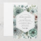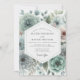A dreamy watercolor design unfolds with soft sage green and dusty blue blossoms, accented by subtle blush pink roses. This enchanting floral composition evokes a romantic and ethereal mood, perfect for a sophisticated affair.