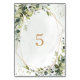 Sage gold eucalyptus geometric wedding table sign bordsnummer