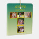 A refined T-shaped collage bordered in shimmering gold, displayed on a soothing sage, green, and gold gradient background. This elegant design blends modern geometry with warm tones, making it ideal for commemorative ornaments, holiday décor, or meaningful keepsake gifts. The gradient backdrop enhances the photo arrangement, creating a timeless piece that radiates harmony and sophistication.