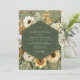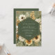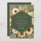 An elegant display of vintage-inspired botanicals set against a deep sage green background. This artistic design features creamy white anemones with dark centers, complemented by vibrant golden ochre wildflowers. Sprigs of delicate greenery are scattered throughout, creating a warm and earthy meadow aesthetic for a sophisticated autumnal affair.