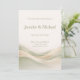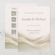 This sophisticated abstract wave design features layered, flowing curves in rich sage green and soft ivory across a warm neutral backdrop. Inspired by the continuing 2026 wedding drapery trend—seen in fabric ceremony backdrops, flowing installations, and romantic reception styling—the gentle movement mimics silk folds for a look that feels organic, elevated, and timeless. The palette embraces one of the most popular 2026 wedding color directions: natural greens paired with soft neutrals for understated luxury.