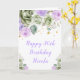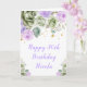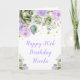 Beautiful Birthday card with sage green and purple floral arrangements. Perfect for a birthday party. The words can be changed to suit your own details or requirements