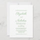 The front design shows a wedding invitation written in sage green classic calligraphy and typography with white background. The back design shows a customizable couple photo.The design is perfect for elegant,classic, unique,modern wedding theme.