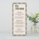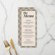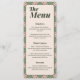 Delight your guests with this elegant Art Deco-inspired wedding menu. Featuring a sophisticated geometric border in sage green and dusty rose, this card offers a clean and modern layout to showcase your wedding breakfast or dinner courses. The reverse side features the signature geometric pattern with a personalized monogram. A perfect addition to your reception table decor for a cohesive and high-end look.