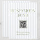 A modern honeymoon fund sign featuring soft blue vertical stripes paired with refined sage green typography. Designed with a clean layout and integrated QR code, it offers a simple and elegant way for guests to contribute to your honeymoon.