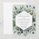 Delicate watercolor illustrations of sage green eucalyptus and muted foliage create a serene and natural atmosphere. This design evokes a tranquil, organic romance, perfect for a sophisticated yet understated union. The palette is a gentle blend of cool greens and soft whites.