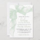 This cute sage green bow baby shower invitation features a soft watercolor sage green bow with flowing ribbons along the top and left edges for a sweet, playful look. The top of the invitation reads “Baby Shower” in a charming mix of script and serif fonts, setting a modern yet cute and elegant tone. The remaining details keep the design light, fun, and celebratory.