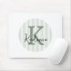 Add a personalized touch to your workspace with this elegant sage green, ivory, and charcoal monogram mouse pad. The design features a soft striped background paired with a classic initial and custom name in refined typography, creating a look that is both modern and timeless. Clean lines and a minimalist layout keep the design sophisticated while allowing the monogram to stand out beautifully on any desk. Perfect for home offices, workspaces, or thoughtful gifts, this mouse pad can be easily customized with your preferred initial, name, and colors using Zazzle’s design tool. © Kimbellished, LLC