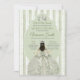Vintage Sage Green Dress with Bow Quinceañera Royal Crown Mis Quince Mexican Birthday Invitation