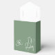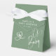 These sage green baby shower favor boxes feature elegant script lettering, a sweet heart with baby footprints, and a soft ribbon finish. Perfect for holding treats or small gifts, they add a refined, gender-neutral touch to modern baby shower décor and coordinate beautifully with minimalist celebration themes.