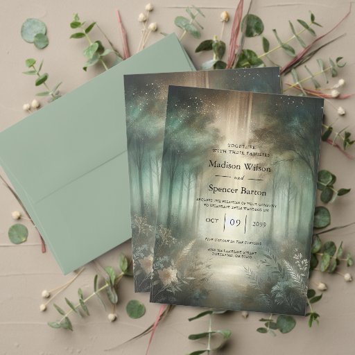 Step into a softly glowing woodland dream with this Sage Green Enchanted Forest Radiance bridal shower invitation. Delicate forest details, gentle light, and layered sage tones create a serene, romantic atmosphere that feels both timeless and enchanting. The design evokes an intimate celebration tucked beneath towering trees, where nature’s elegance and quiet magic set the tone for a heartfelt gathering.