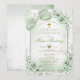 Sage Green Floral Boy Cross First Holy Communion Inbjudningar