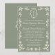 Sage Green Floral Old Money Monogram Crest Wedding Inbjudningar