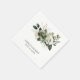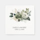 These elegant wedding napkins feature a soft, minimalist design accented with a delicate watercolor floral arrangement in sage green, ivory, and muted botanical tones. The lush greenery and blooming florals create a romantic, nature-inspired focal point, while the clean background keeps the overall look refined and timeless. Finished with classic, understated typography, these napkins add a polished and coordinated touch to your reception décor, making them perfect for garden, rustic, or modern elegant weddings.