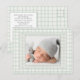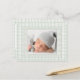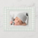 Sage Green Gingham One Photo Gender Neutral Birth Meddelande Vykort
