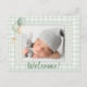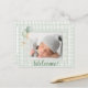 Sage Green Gingham One Photo Gender Neutral Birth Meddelande Vykort