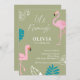 Sage Green Let’s Flamingle Flamingo Birthday Inbjudningar