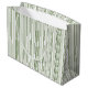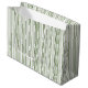 Sage is the rage! This elegant gift bag has stripes in light, medium, and dark shades of sage green, alternating with white, in varying widths. The neutral colors are perfect for any personal or business occasion.