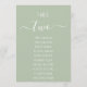 Sage Green Modern White Script Seating Chart Card