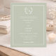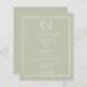 A sage green colored background decorated with a hand drawn crest. White colored frames and text. Personalize and your monogram initials, names and details.