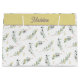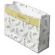 Olive branch botanical green gift bag design featuring a delicate leafy pattern on a soft neutral background with a scalloped border and name detail. Perfect for elegant gift wrapping, botanical packaging, and nature inspired presentation with minimalist greenery style.
