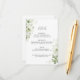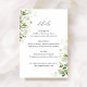Soft watercolor foliage, delicate white blooms, and an airy layout—subtly inspired by organic greenery and wild meadow florals—create a calm, elevated look that complements garden weddings, outdoor ceremonies, and nature-inspired celebrations. The design allows important details—such as ceremony time, reception location, transportation notes, or accommodations—to remain easy to read while maintaining a cohesive, elegant aesthetic.