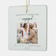 Celebrate your first Christmas as an engaged couple with this elegant sage green photo ceramic ornament. The soft sage palette frames your favorite picture with a calm, romantic aesthetic perfect for holiday decorating. Clean modern typography and a refined finish create a timeless keepsake designed for gifting or displaying on your tree with warm and meaningful charm.