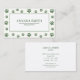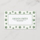 The back is white with editable sage green letters, contact details including name, business title, phone number, email, and address.