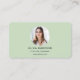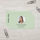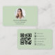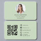 Promote your brand with this sage green QR code photo business card. The soft green color creates a calm, modern look while the photo layout allows you to showcase your brand visually. An integrated QR code makes it easy for clients to access websites, booking pages, or social media. Designed with clean spacing and modern styling, this card is ideal for professionals looking for a polished, print-ready business card with digital convenience.