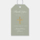 Personalized Sage Green Religious Cross Boy Confirmation Gift Tags. Part of the Sage Green Cross Boy Confirmation Invitation Suite with matching invitation, stationery and party accessories available.