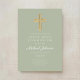 Sage Green Religious Cross Boy First Communion Inbjudningar